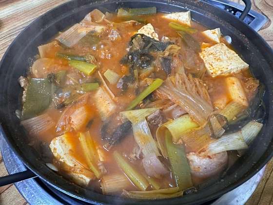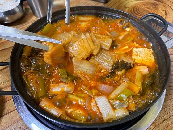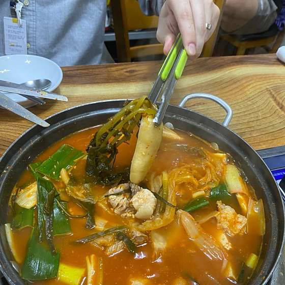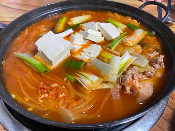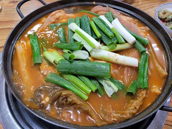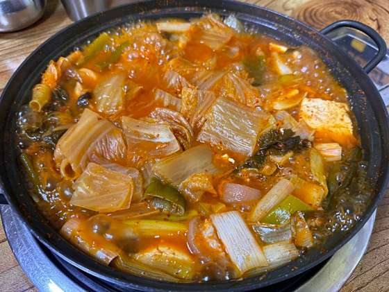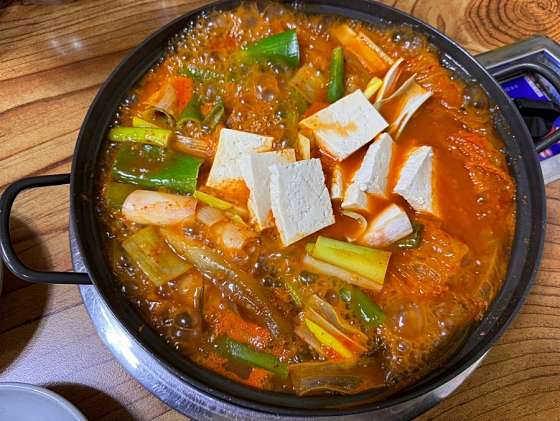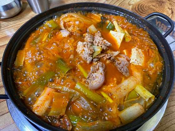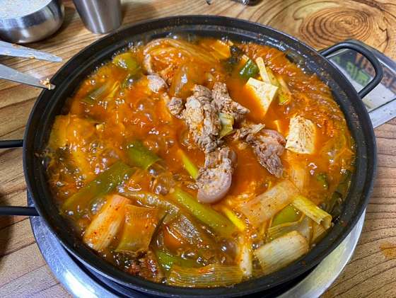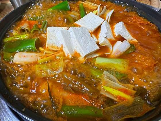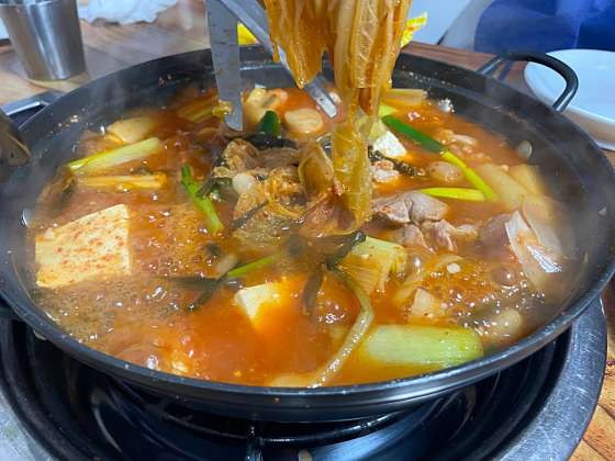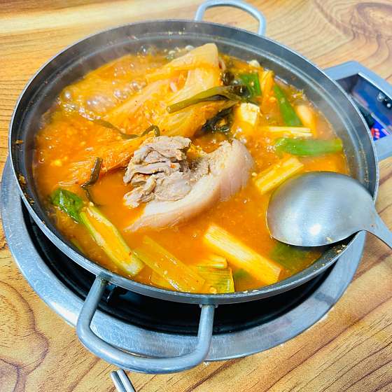 인위적이지 않고 묵은지 깊은맛이 나서 맛있었어요. 고기는 사태라 그런지 비계부분이 좀 질긴부분이 있었지만 양많고 맛있었어요 맛집이래서 먹어봤어요.. 아주 묵은 쉰맛나는 ... 호불호있을듯요
