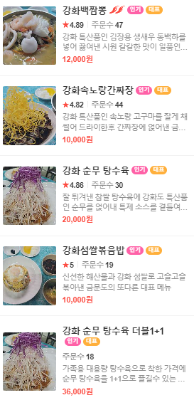 강화도 특산물로 만든 탕수육, 볶음밥, 백짬뽕, 짜장면 중에서 탕수육하고 짜장면 정말 맛있어요..볶음밥, 백짬뽕 맛있지만 순위로 고른다고 1위 탕수육, 2위 짜장면, 3위 백짬뽕 4위 볶음밥 입니다..아무튼 4가지는 꼭꼭 주문해서 드셔보세요