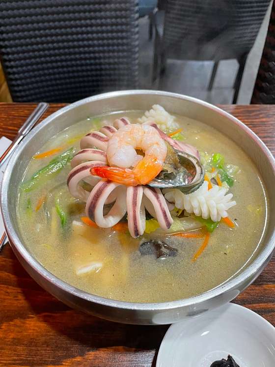 일단 면이 최고존엄입니다. 먹어본 면 중에 제일 찰지고 쫄깃쫄깃했어요 보통 면 시간 지나면 부는데, 얘는 뿔지않고 처음의 쫄깃함을 계속 유지해요. 간짜장 위에는 뭔가 했는데 고구마에요 저는 단 거 좋아하는 편인데, 그래서 짜장면은 지금까지 먹었던 짜장 중에 제일 맛있었습니다 마지막까지 소스 다 긁어먹었어요 백짬뽕은 딱 한술 뜨면 시원하다는 소리 나옵니다 일단 백짬뽕은 딱 국물 첫 숟갈 들었을 때 시원하다는 소리 안나오면 망한거 아시죠? 백짬뽕 역시 존맛입니다. 해산물폭탄에다가 깊이 있는 국물 맛 지립니다. 옆테이블 아재들 백짬뽕 먹다니 뭐야 왜 이렇게 맛있어’라고 함ㅋㅋ 백짬뽕 안에 굴이 별미입니다. 탕수육은 바삭바삭한 일반적 스타일이 아니고 쫄깃한 찹살탕수육느낌인데 야채랑 같이 소스에 먹으면 역시 지려요