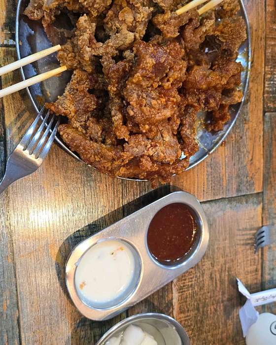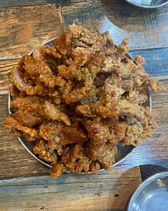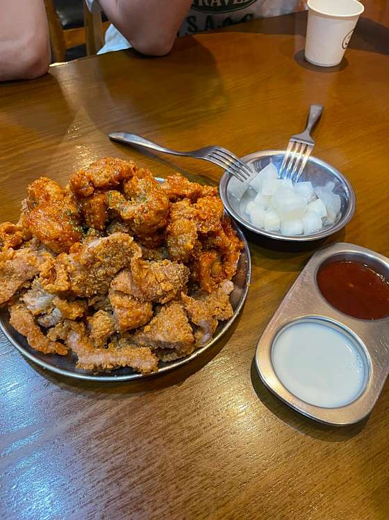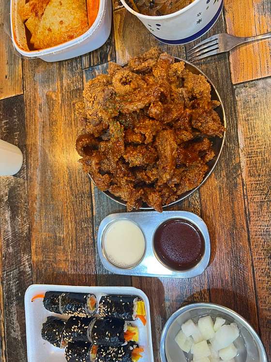 거의 1년만에 온 ! 포장으로만 먹어보고 매장에서는 처음 먹어보는데 매장에서 바로 먹는게 훨씬 맛있어요 딱 돼지갈비 튀긴 맛 인데 은근 중독성 있는 맛 이랍니다 하지만 먹다보면 느끼해서 콜라는 필수.. 그래도 맛있게 먹었습니다 !! 사람이 어마어마 하게 많아서 웨이팅은 필수.. 1시간 정도 기다리고 들어간것 같아요 웨이팅 종이 받고 다른곳 돌아다니시다가 오시는거 추천드려요 !! 잘먹었습니다 그냥 양념돼지고기 튀긴 맛이에요. 딱 상상할 수 있는 맛..갠적으로 튀긴건 치킨같아요. 먹을만은 한데 엄청 맛도리다 이건아닌거같아용