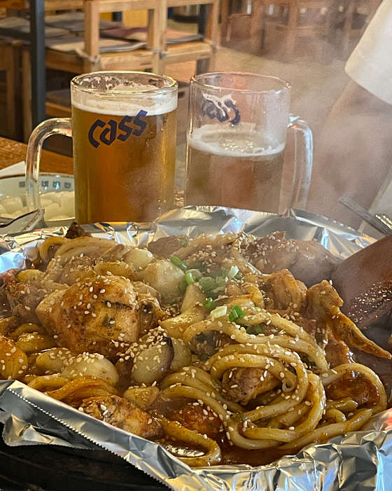 성동구청맛집 왕초바베큐에 다녀왔습니다. 소문대로 작정하고 만든 술집이에요...ㅎ 일단 매장이 넓어서 좋고 컨셉이 왕초’라 신선했습니다. 여기 생맥 특이하게 시원하고 맛있어요!! 그리고 무조건 통마늘 우동사리 시키세요. 이거 조합 장난 없습니다..!! 양도 많고 가격도 합리적이라 다음에는 닭발 먹으러 갈려구요!