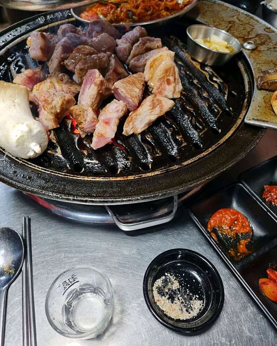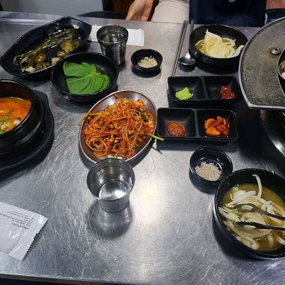 주변에서 엄청난 맛집이라고 소개받아서 이번에 다녀왔는데 정 말 후회없었어요! 일요일 저녁 7시반쯤 갔는데 다행히 웨이팅 없었고 매장도 넓어서 널찍하게 앉을수있었어요. 밑반찬 추가는 셀프일것같아보이지만 이모님들이 츤츤하게 다 갖다주십니당 ㅋㅋㅋ고기도 구워주셔서 그냥 편하게 앉아서 먹기만 하면 되용 맛있는 저녁식사였네요