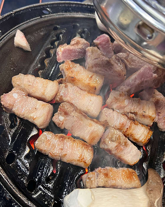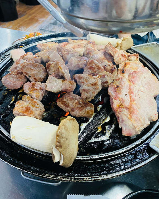일단은 고기 질이 다르고 목살 서울에서 먹어본 목살집 중 1등 버섯은 거의 보약이였고 크게 먹는 거 좋아하는데 숭덩숭덩 잘 구워주시고 잘 짤라주시고 그저 사랑입니다 땅코 내사라 땅코오 서울에서 금돼지식당 다음가는 삼겹살 맛집이라고 생각한다! 벌써 네번은 넘게 방문했다. 웨이팅 있어도 생각보다 금방 순서가 오니 무조건 웨이팅 해야하는곳이다. 직접 구워주시는것도 좋고,처음에 나오는 돼지김치비지찌개도 이야아아아 귯귯! 추가로 시켜먹었고,전투라면도 맛있어서 술이 쭉쭉 들어간다. 무조건 지인들한테 추천하는 맛집 중 한 곳이당