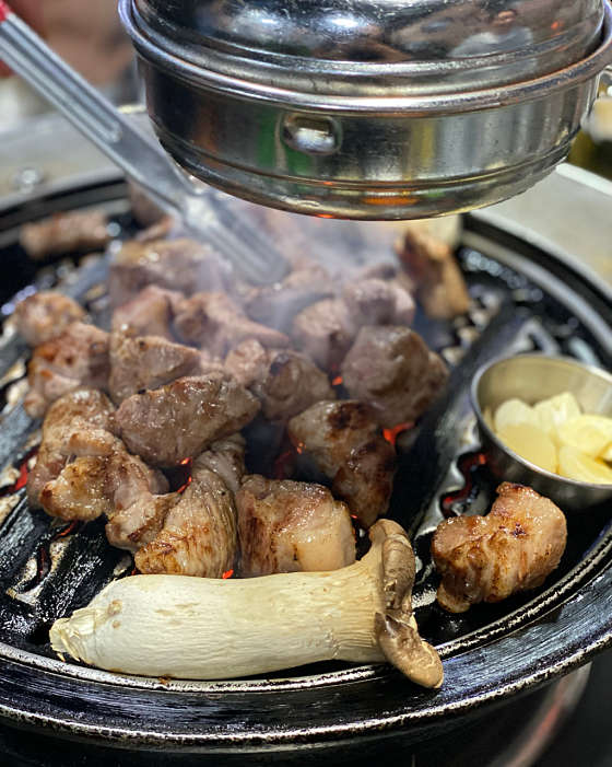 서울 3대 목살집이라는 타이틀 명성에 걸맞는 맛이네요. 금요일 7시 정도오니 앞에 15팀 대기 있었는데 중간에 포기하신 분들이 생각보다 많아 8시 안되서 입장했네요. 고기도 잡내 없이 맛있고 고기를 참 맛있게 구워주시네요. 왜 버섯마저 고기처럼 쫄깃하게 맛있는지 ㅎ 콩나물 무침 속에 김치도 있어 불판에 익혀서 밥, 고기, 계란찜과 먹으니 알지만 맛없을 수 없는 그 맛이네요!
