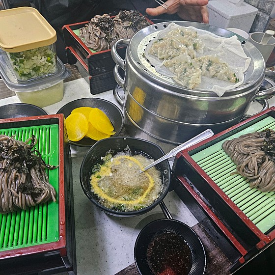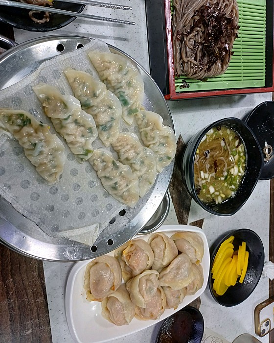 쯔양도 다녀가시고 ㅎㅎ 모밀과 만두가 아주 맛있어요 고기만두 피가 얇아서 맛있어요 고기만두 최고! 모밀도 맛있지만 포장보다 매장에서 먹어야 맛있어서 포장할땐 고기만두만 해요! 피얇고 맛있우요