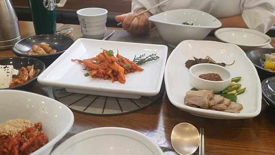 팔공산 드라이브 가는길에 점심먹으러 들렸던 맛집이에요.실내 인테리어도 예쁘고 더운날 시원하게 에어컨 빵빵해서 더 좋았어요.한식 좋아하는 가족이라 주변에 한식당 많이 다니는데이렇게 찐 맛있는 팔공산 맛집을 이제야 찾았어요반찬도 다 맛있고 더덕해물갈비찜 정식 두번세번 드세요 너무 맛있게 잘먹었습니다.음식 간이 쎄지않고 건강한 밥상 부모님 모시고 또 찾을거에요. 시원한 포도발효음료도 후식으로 좋았어요