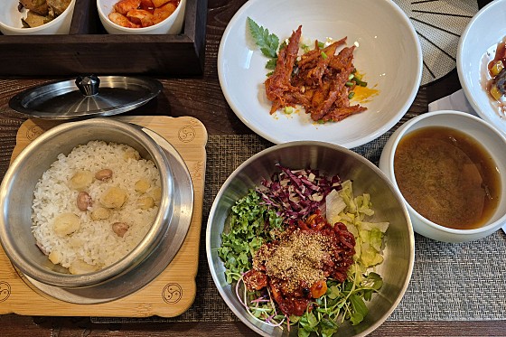 정갈하고 깔끔한 건강한 밥상이예요나중에 시어른과 친정식구와 함께 하고싶어요더덕솥밥이 너무나 맛있어요 팔공산 드라이브 갔다가 한정식 먹고싶어서 찾아갔는데 더덕해물갈비찜 푸짐하고 맛있었어요 룸도 많고 내부가 깨끗해서 상견례장소나 모임장소로 넘 좋을것같아요 메뉴가 이전이랑 바뀌긴 했는데 더덕은 여전히 맛있네요.