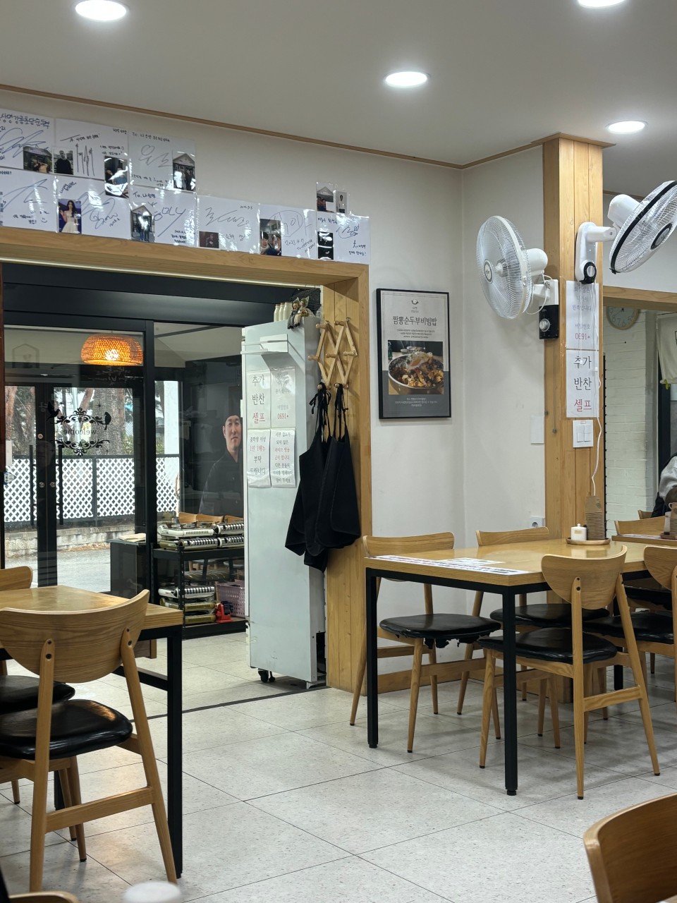 강릉 여행왔다가 순두부찌개가 먹고 싶어서 방문했어요! 평일 아침에 방문 했어도 사람들이 많이 있었어요. 그만큼 맛집이라는 증거겠죠? 일반 순두부는 슴슴 많이 건강한 맛이었어요. 주차는 가게 앞에도 할 수 있고 근처 무료 공용 주차장에도 할 수 있어요. 너무 맛있어요ㅜㅜㅜ 특히 짬뽕비빔밥이 진짜 맛있어요 고소하고 매콤하고 입안에서 여러맛이 한번에 팡팡 터져서 먹는 재미가 있어요 짬뽕국물도 시원해서 둘이 오면 비빔밥이랑 칼국수 하나씩 시키는걸 추천합니다 짬뽕만두는 너무 맛있는데 엄청 맵긴하더라구여 매운거 잘드시는분들은 엄청 좋아하실거 같아여 여행와서 맛있는 음식 잘먹고갑니다
