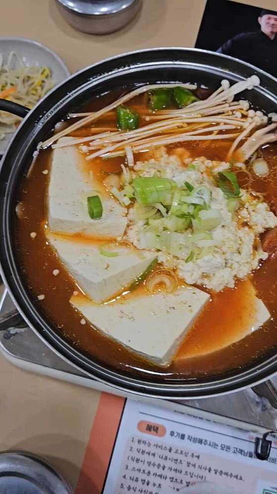 추석 당일에 1시간 웨이팅해서 들어왔어요 일단 두부가 부들부들해요 질 좋은 두부라는 게 느껴졌어요 순두부찌개에 순두부 무료 추가된다는 점도 너무 좋네요 짬뽕 순두부는 불향이 나고 맛있게 매워요 맵찔이도 가능해요 그리고 매장도 깨끗하고 알바생들도 친절해요다음에도 기다리고 또 먹을 의향 있어요