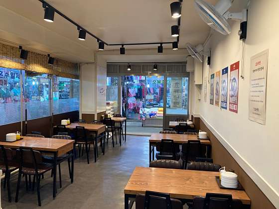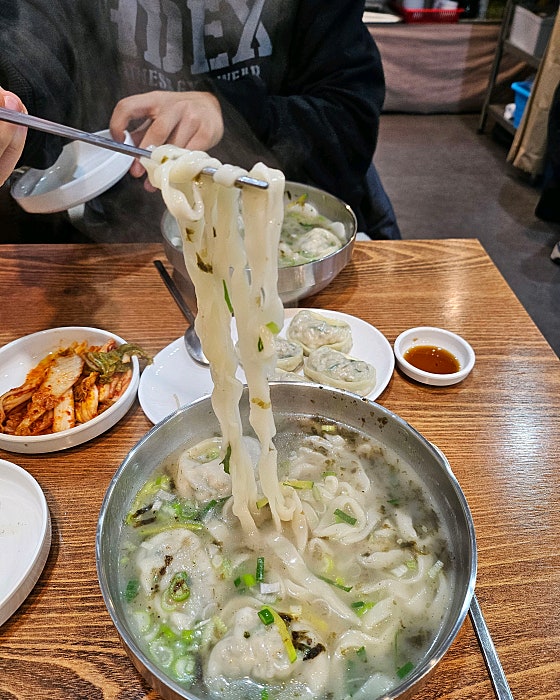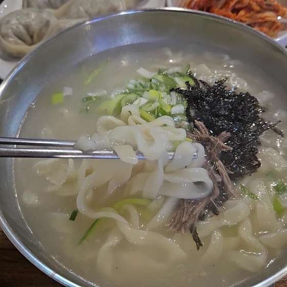 갑자기 추워진 날씨에 따뜻한 국물 음식 먹으러 급 방문했는데 와!! 너무 맛있어요 주문 즉시 갓 뽑은 면으로 만들어주셔서 면발이 탱글탱글하고 수제로 빚은 고기 만두도 신선하고 재료가 알차게 들어있어요 사골 국물도 취향저격그리고 김치가 너무 맛있어요!! 판매하셨으면 좋겠어요 ㅋㅋㅋ 칼국수와 조합이 너무 좋아요 시장에서 보기 힘든 깔끔한 인테리어에 매장이 청결해요 반찬사러 시장 자주 방문하는데이제 점심은 여기서 해야겠어요