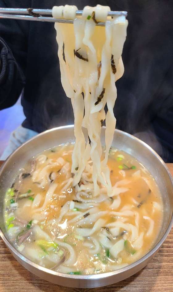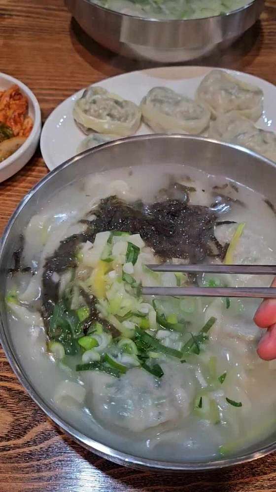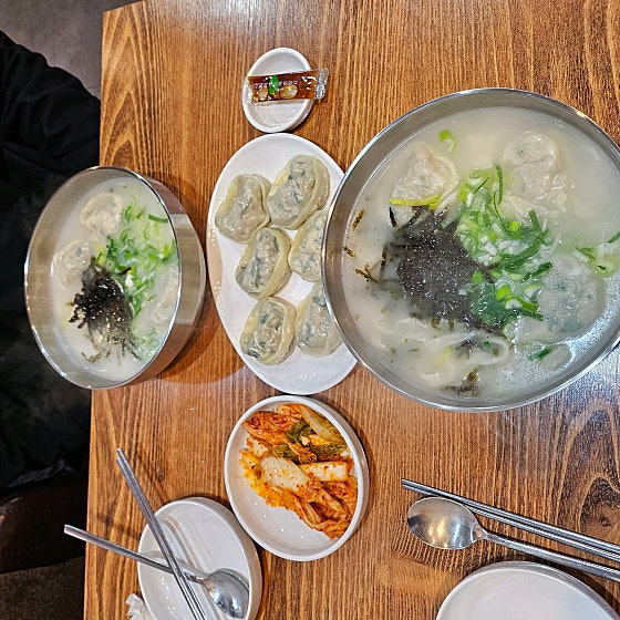 엄마와 함께 저녁식사 하러 광명전통시장 맛집인 방문했어요 맛있으셔서 여름엔 냉면 많이 드시러 오셨다는데 겨울이 되니 계절메뉴인 사골 칼국수 먹으러 왔어요 자가제면이라 쫄깃탱탱한 면발이 너무 맛있어요 여름에 냉면 먹으러 갔었다가 너무 맛있어서 깜놀했었는데이번에 뜨끈한 칼국수랑 만두 먹고 또 반했어요 사골국물이 정말 진하고 맛있네요 양도 많은데 가격도 엄청 착함.. 만두도 존맛탱이니까 꼭 주문하시길!! 광명시장 칼국수 맛집으로 추천합니다!