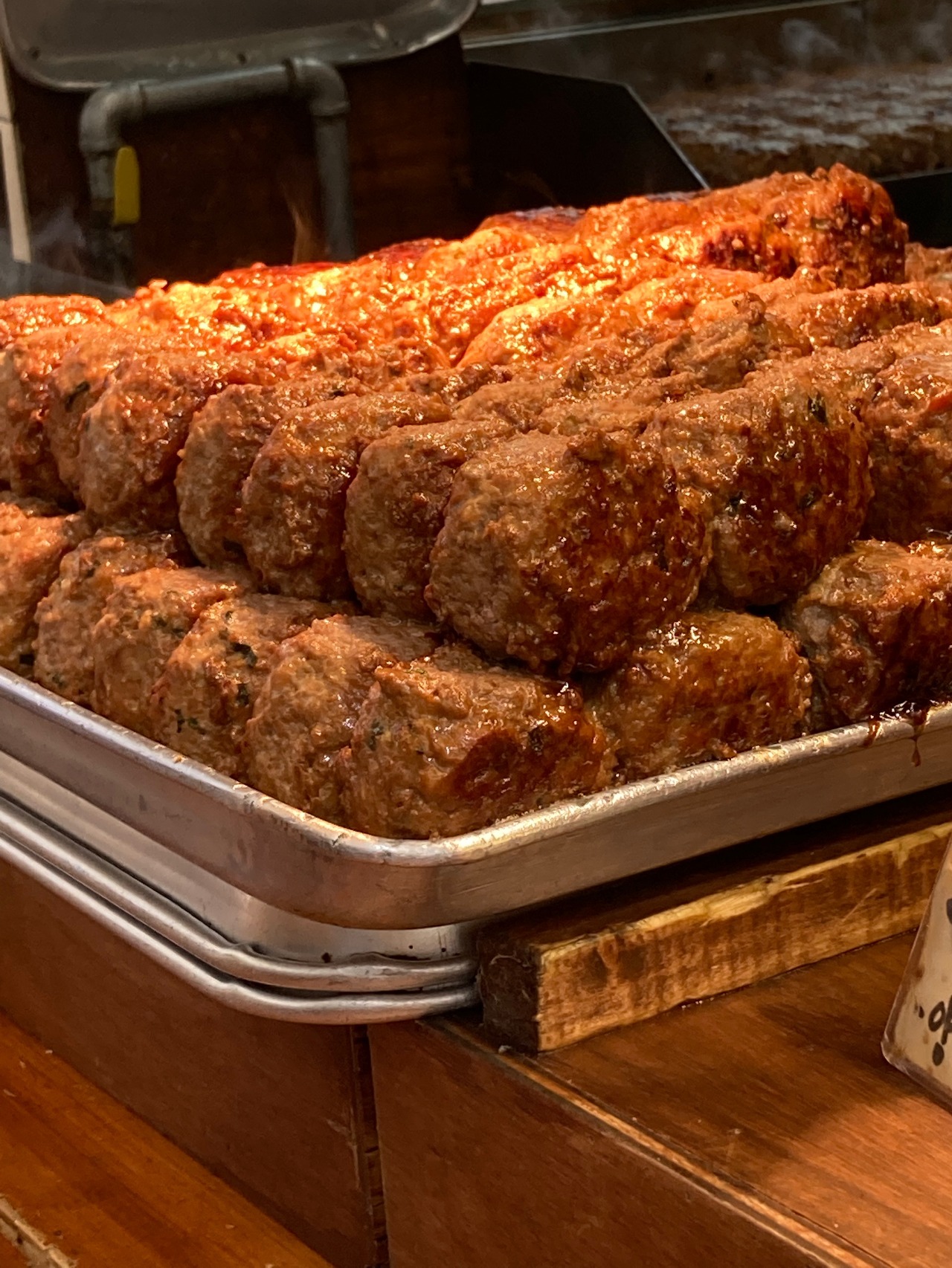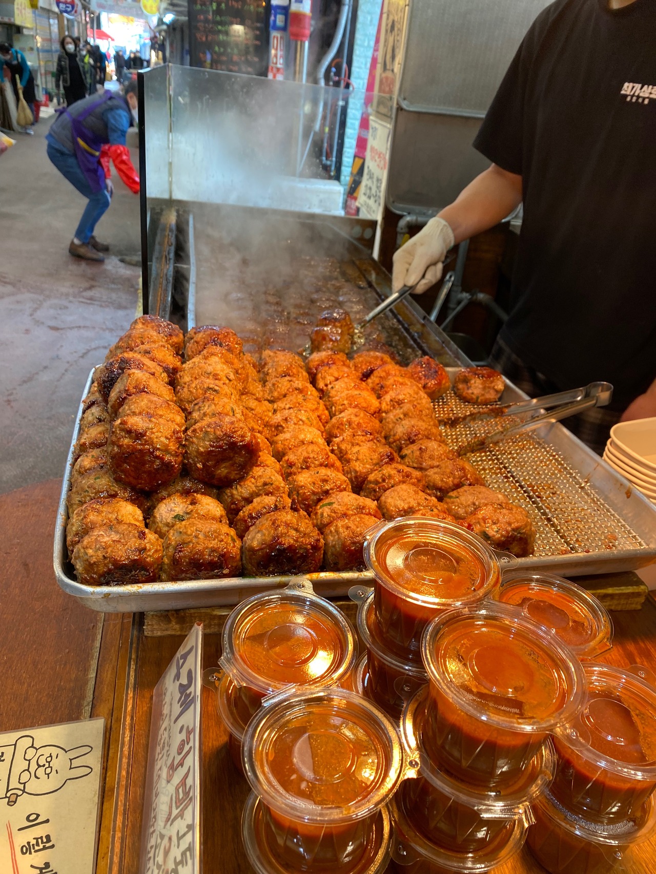만원에 5개에서 4개로 바꼈나봐요. 고물가시대네요. 두툼해서 모닝빵에 넣고 햄버거 만들어먹는다길래 구매했어요. 집에 갖고 올때까지 식지 않았네요. 잘라서 먹어보니 많이 달지도 짜지도 않은 적당한 맛이였어요. 영천시장 가게 되면 또 구매예정입니다.