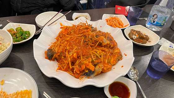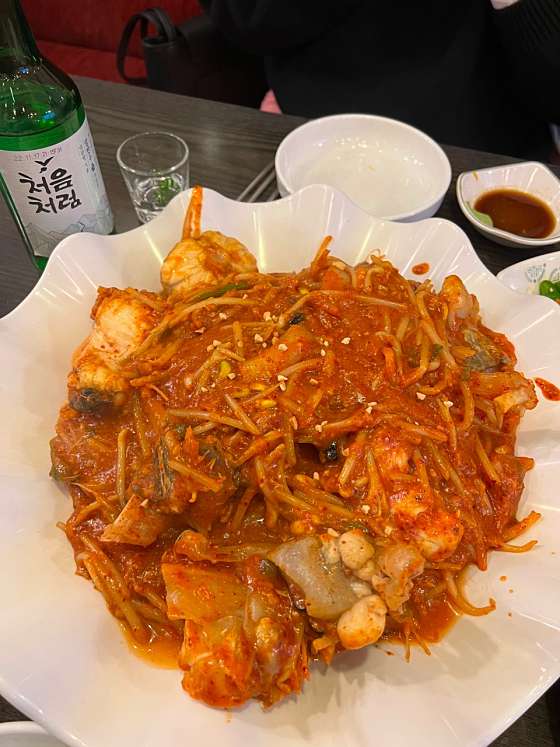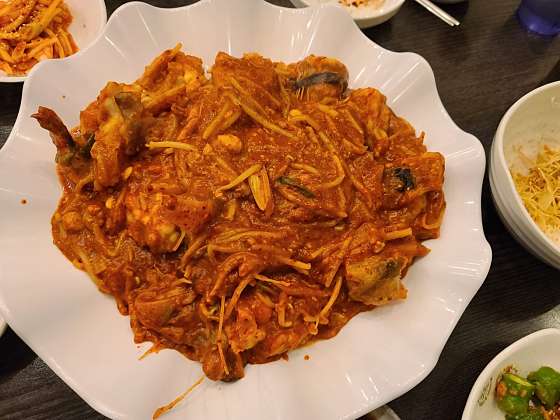 아구찜 먹고싶어서 알아보니 이렇게 유명하고 맛있는곳이!!!? 맵기 순하게 먹는거 추천ㅋㅋ 매운맛하니 면사리 볶음밥 다 맵네요ㅋ 맵찔 들은 조심ㅋㅋ 중독적인 소스맛 끝내줍니다! 아구찜 나오기 전에 나오는 고소한 호박전과 땅콩 가루 양배추, 도토리 묵을 먹고 있으면 시원한 콩나물과 고춧가루 맛이 매력적인 싱싱한 아구찜이 나옵니다. 배가 너무 불러서 아쉬운 마음. 좋은 사람들과 함께 먹으면 더욱 맛있음. 친절하지는 않아요 서빙하는 아주머니 사람들이 많아서 음식 주문시 기다림이 있습니다.