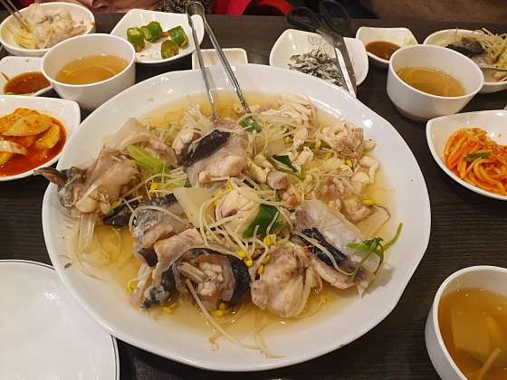 생아구를 써서 다른 아구찜과 좀 다른 느낌인데 맛있게 잘 먹었습니다. 요리 전에 주시는 늙은호박전이 정말 맛있네요. 조금 불친절하게 느껴질 수도 있지만 나쁜 의도는 없어 보입니다.