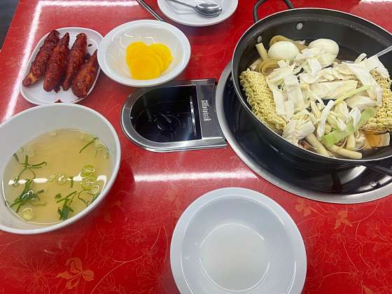 오픈런으로 오전 10 30에 왔는데 이미 식사하고 계신 분들이 있더라구요 나름 비장하게 왔는데 덕분에 편하게 입장하였습니다 혼자 갔는데 바로 4인석으로 안내받아서 감사하게두 넓은 곳에서 편하게 먹을 수 있었네요 메뉴도 즉떡 1인분 주문이 가능한 좋은 곳입니다..! 그래서 사진과 같이 이것저것 막 시켰네요 주문서에 적고 선불 결제하는 시스템입니다 셀프바에선 어묵국물이랑 단무지를 자유롭게 가져가면되구요 즉석떡볶이에 라면사리해서 먹는데 끝부분 국물쫄여질때 너무 맛있었네요 단짠단짠 느낌 찐하게 느낄 수 있었습니다 거기에 볶음밥까지 해먹으니 극락이에요!! 부침군만두는 양념에 절여져 눅눅할까 했는데 의외로 바삭함이 꽤 살아있어요 익숙한 듯 하면서 특별해 제일 생각나는 맛인 것 같아요 만두는 꼭 먹어보세용!!