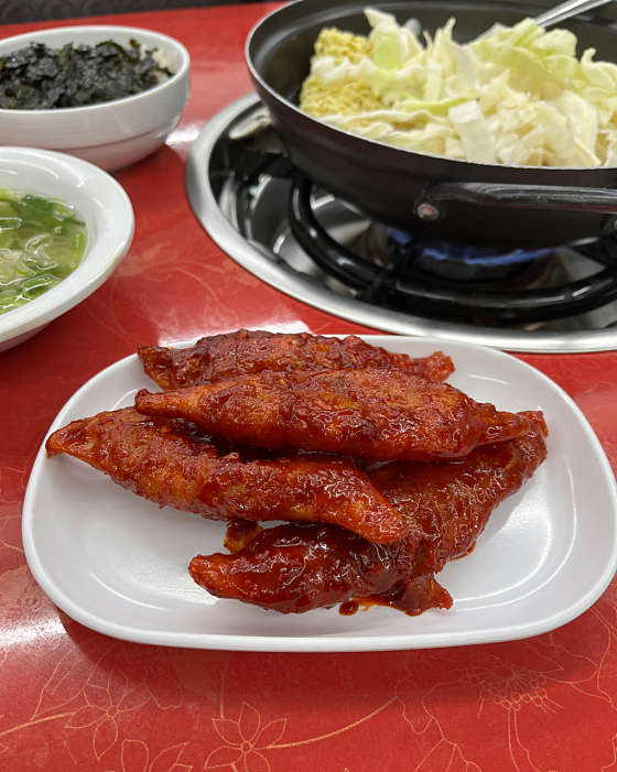 정말 너무 오랫만에 찾아갔어요 옛날생각나서 갔는데 무침만두 여전히 맛있네요 오픈런했는데 11시되니 줄서기 시작되더라구요 즉석떡뽁기 2 무침만두2 쫄면1 오뎅2 4명이서 배터지게 먹고 매워서 혼났어요 맛은 만의 고추장양념 맛이어서 저는 맛있었어요