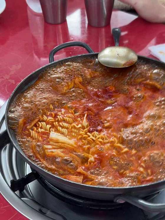 설 명절 앞두고 방문했습니다 ! 넓고 깨끗한 내부와 화장실, 주차 지원도 해줘서 좋았고 둘이서 2인 세트에 무침군만두, 볶음밥 먹고 왔는데 양이 푸짐한 편이었어요. 무침군만두는 좀 식었지만 그래도 닭강정 튀김 옷 먹는 느낌으로 꾸덕하고 자극적인 양념이 사이드 메뉴로 딱이었고 즉석떡볶이는 생각보다 매운 편이라 당황했지만 짜장 고추장이 섞인 검붉은 비주얼이 침샘 자극 다른 곳보다는 확실히 맛있는 즉떡이었네요. 셀프바에서 가져다 먹는 어묵국물은 얼마나 맛있던지 두 번 리필해다 흡입했고 볶음밥은 그냥 김과 밥을 양념이 볶아주시는데 좀 심심해서 덜어주신 양념과 어묵 더해서 먹으니 맛있었어요. 유명 맛집 방문해서 좋았고 맛도 엄청 큰 기대를 안해서 그런지 만족스럽게 다녀왔습니다 ㅎ