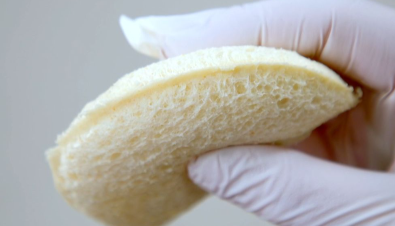 3. 식빵을 대각선으로 반으로 접은 후 컵으로 꾹 눌러 반달 모양을 만들어주면 완성!