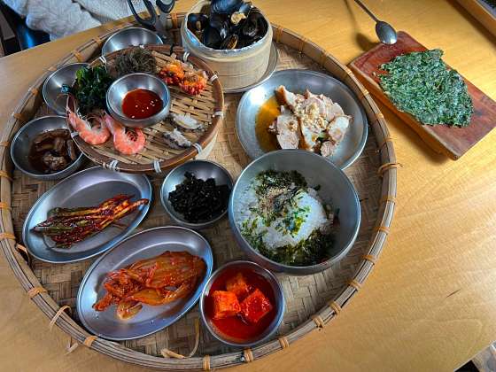 온라인으로 시켜먹던 죽을 직접 먹어보고 싶어서 갔는데 정말 리뷰에서 보는 그대로 푸짐한 한상이 나오네요 다양한 음식을 맛볼 수 있어서 좋았어요. 매생이전도 맛있고 죽도 맛있고 다 맛있어요. 남은 죽은 포장해서 왔는데 둘이서 배부르게 먹고 죽용기 한 개 정도 남아서 포장해 왔습니다. 지인들에게 추천할 정도로 괜찮은 맛집입니다