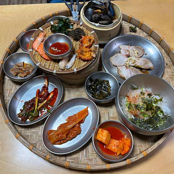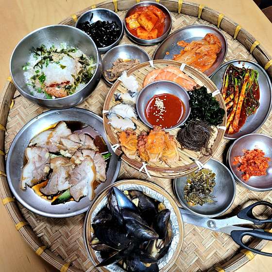 해산물 신선하고 죽도 건강맛! 아침에 가서 쏘주 못 마신게 아쉽 리뷰보고 갔더니 나쁘지않다. 전복죽 넉넉히 양도 많고, 반찬개념의 해산물들과 파김치, 직접굽는 전까지.